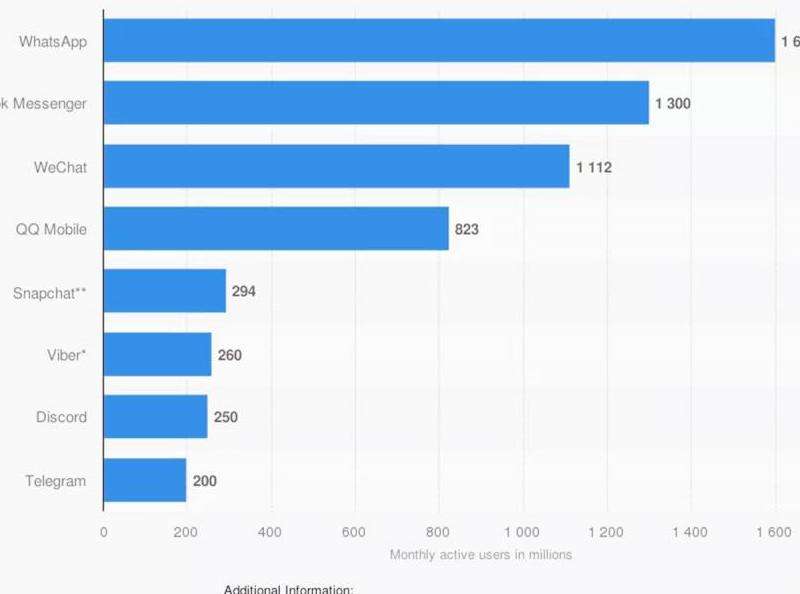 根据最新数据显示,截至2021年底,WhatsApp拥有超过20亿的活跃用户,是全球最大的即时通讯应用之一。WhatsApp在印度、巴西、墨西哥等国家拥有庞大的用户群体,尤其在拉美和印度市场占据主导地位。